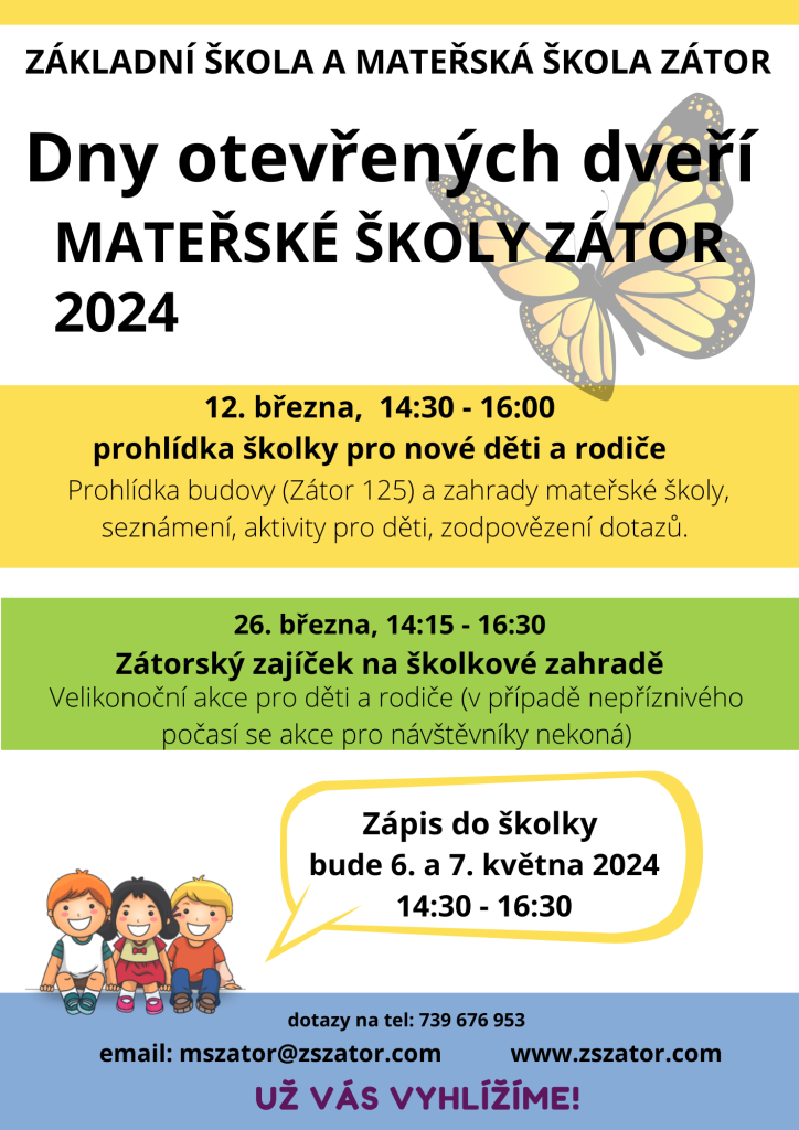 V úterý 12.3. 2024 od 14:30 do 16.00 v budově MŠ na adrese Zátor 126.