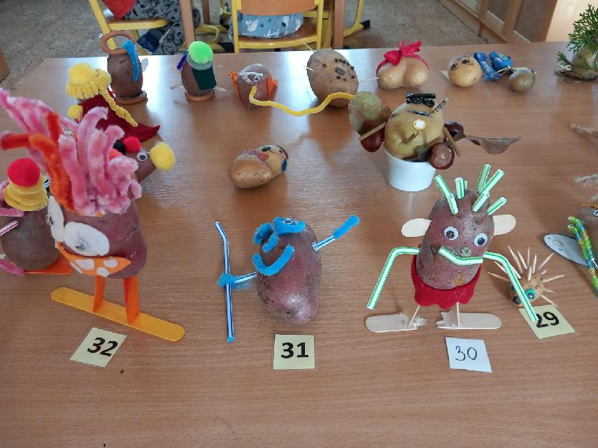 V rámci podzimu ve školní družině si děti nazdobily dle své fantazie bramboru. Použily nejrůznější materiály, např. barevné papíry, stužky, brčka, přírodní dekorace, párátka či látky. Při této činnosti děti rozvíjely svou jemnou motoriku a kreativitu. Poté proběhla výstava těchto brambor a následný výběr těch nekrásnějších.